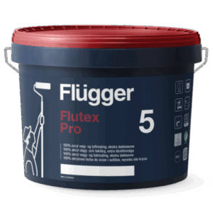 כמות של צבע מט מקצועי. 100% אקרילי מומלץ לקירות ותקרות Flügger Flutex Pro 5 – מיכל 10 ליטר